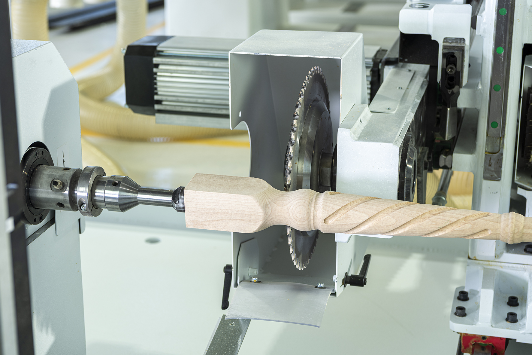 Stroj je navrhnutý predovšetkým na výrobu tvarovo náročných komponentov, ako sú nohy stoličiek, stolov, stĺpy alebo ďalšie profilované dielce.