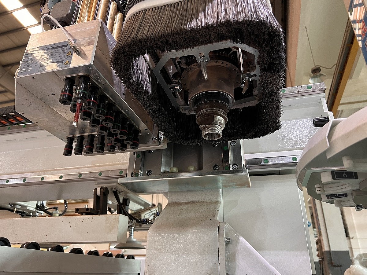 Konštrukcia stroja je tvorená pevnou zváranou oceľovou konštrukciou, ktorá zaisťuje stabilitu a znižuje vibrácie pri obrábaní. Súčasťou je aj vákuový pracovný stôl, ktorý drží materiál pomocou podtlaku počas obrábania. Vďaka tejto konštrukcii je stroj vhodný na presnú a efektívnu priemyselnú výrobu nábytkových dielcov. Ovládanie prebieha pomocou CNC riadiaceho systému, ktorý umožňuje ľahké programovanie a kontrolu výroby.