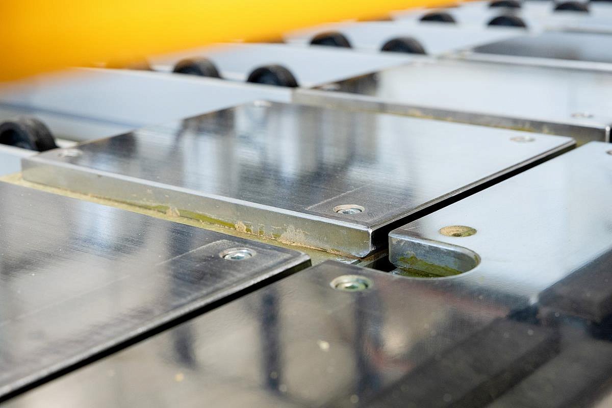 - Automatický posuv materiálu pomocou kleštín umožňuje presné a plynulé podávanie dosiek do reznej zóny. Vďaka tomu je zabezpečená vysoká presnosť a efektivita výroby.