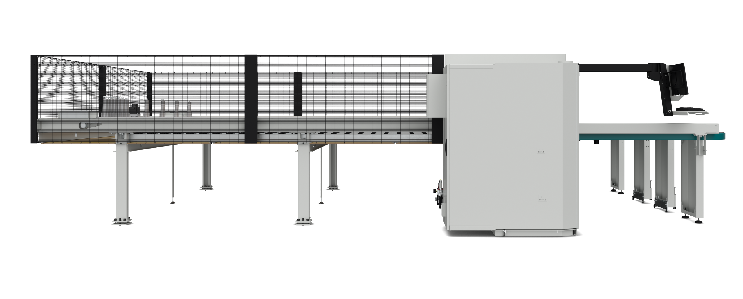 Zadné nakladanie stroja: Integrovaný zdvíhací stôl zvyšuje kapacitu materiálu bez toho, aby bolo nutné zväčšovať pôdorys stroja – nezaberá teda žiadne ďalšie miesto. Stačí naložiť celý balík (až do výšky 630mm) a stroj bude vždy pripravený na nepretržitú prevádzku.