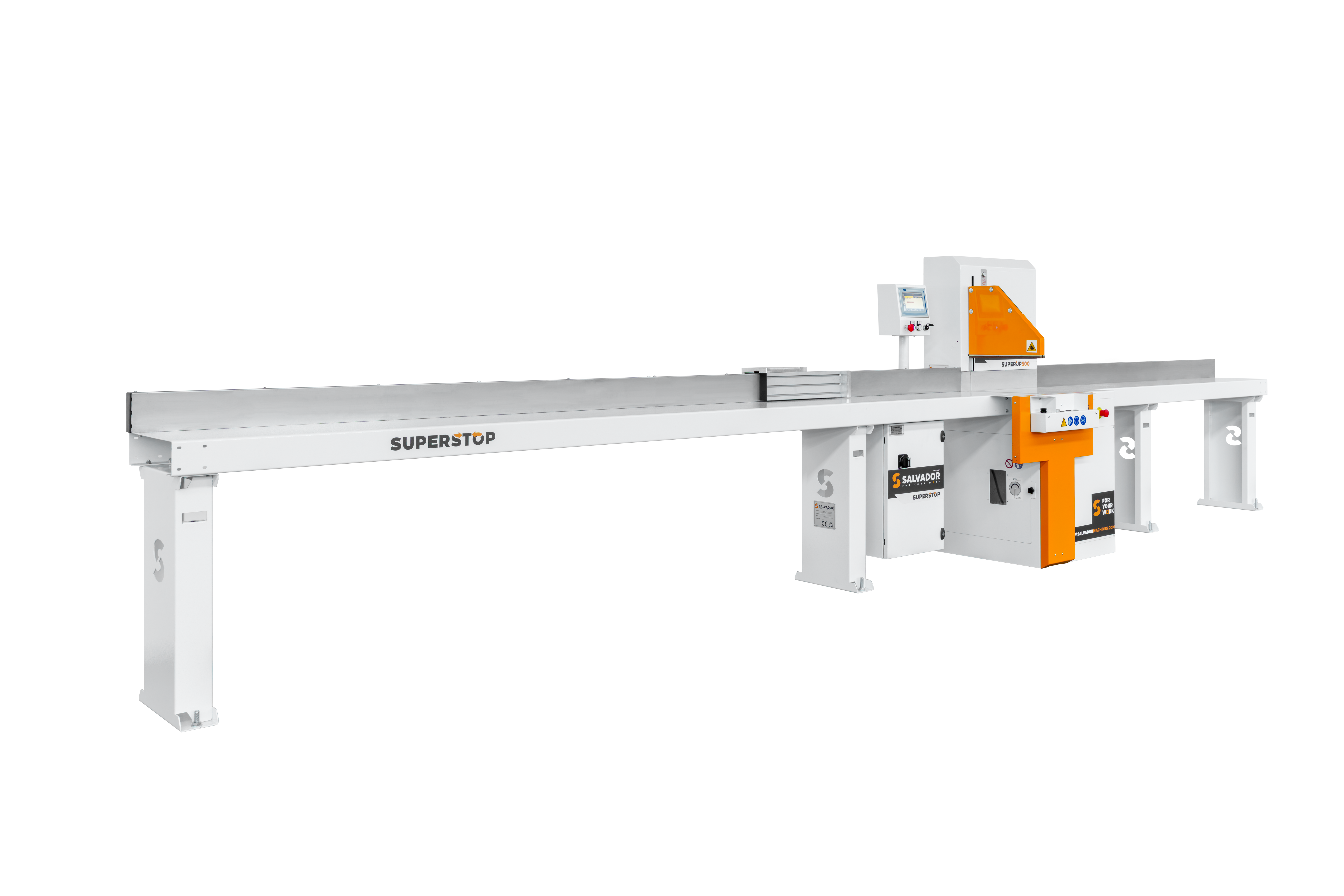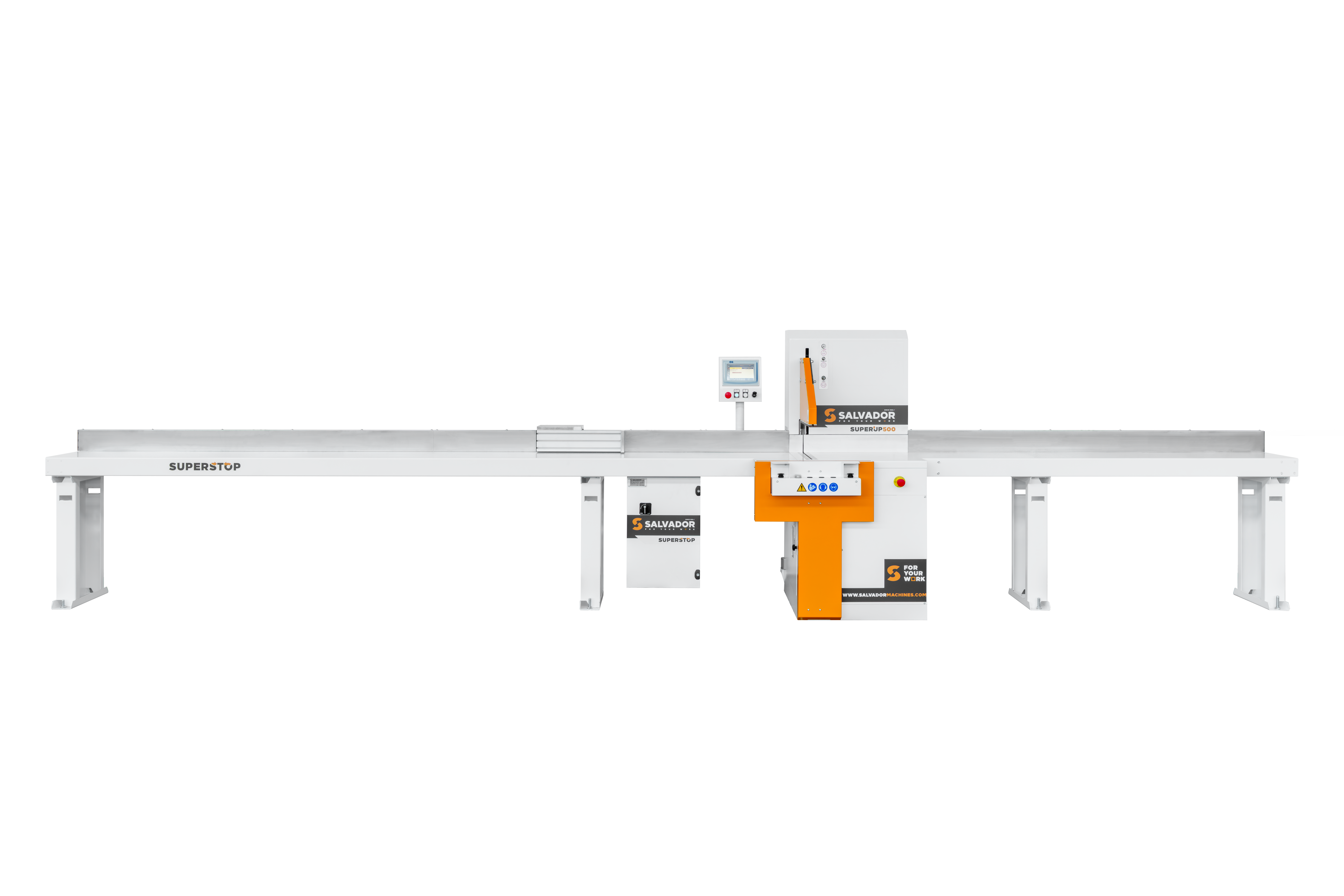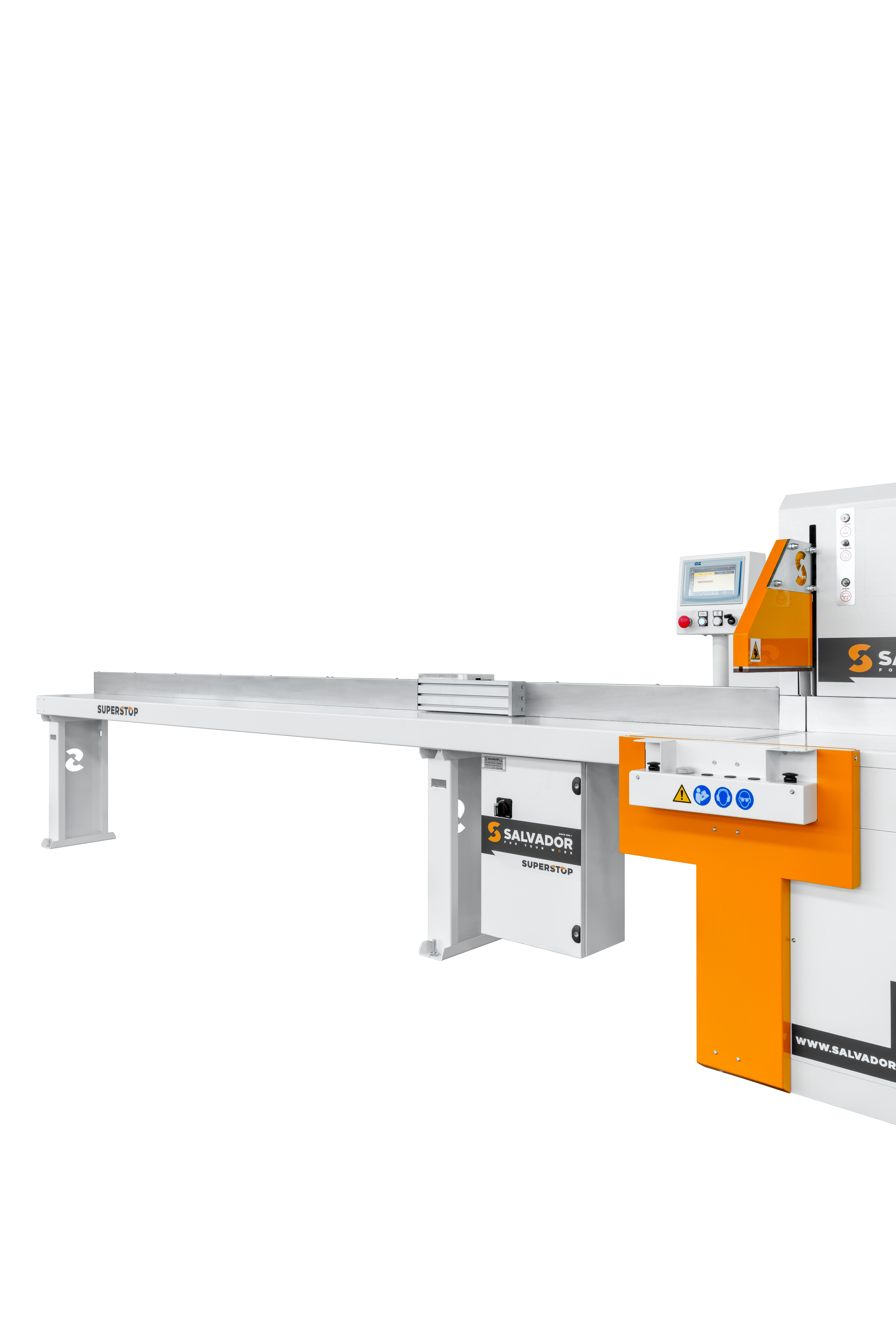 Superstop slúži na automatické posúvanie materiálu do reznej zóny stroja. Pomocou presného pohybu nastavuje požadovanú dĺžku materiálu pred vykonaním rezu.