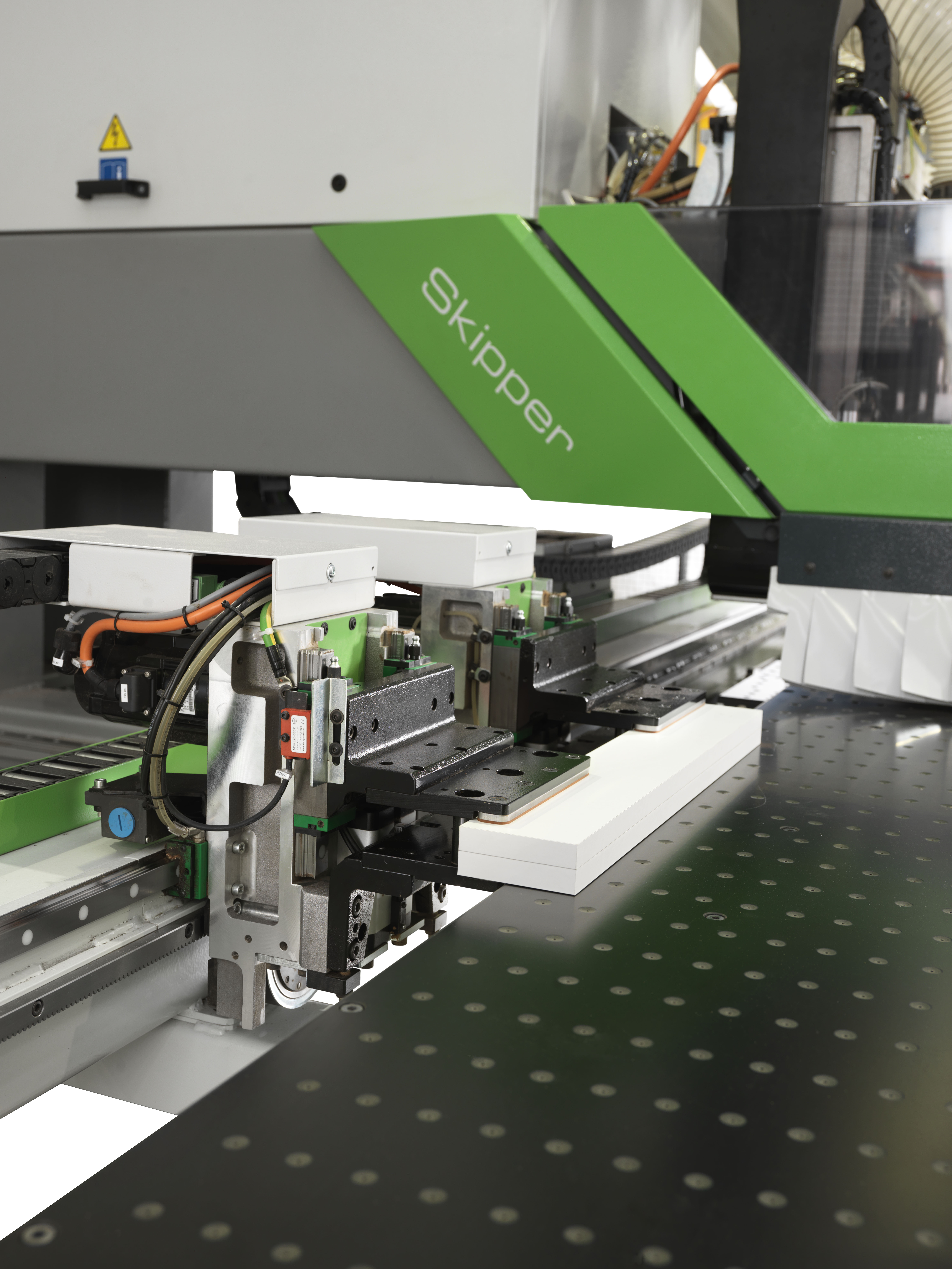 Skipper 100 je inovatívne CNC obrábacie centrum na spracovanie dielcov s rôznymi formátmi v reálnom čase. Tento stroj je dokonalým riešením pre neštandardnú veľkovýrobu s vysokými nárokmi na prispôsobenie požiadavkám zo strany zákazníka, ďalej na výrobu malých šarží pre tretie strany a pre zákazníkov vyžadujúcich flexibilnú výrobu "just in time".