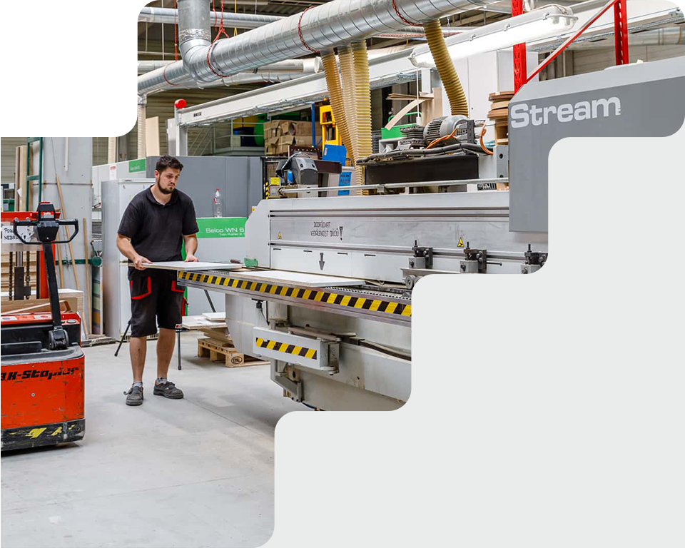 Základom výroby je naďalej olepovací stroj Biesse Stream B MDS, ktorý zvláda prácu s lepidlami EVA, PUR aj AirForce – bezškárovou technológiou s horúcim vzduchom. Vďaka zásobníku na 12 typov hrán, elektronickému riadeniu a kapacite až 1200 dielcov za smenu dokáže firma vyrábať s maximálnou presnosťou a efektivitou.