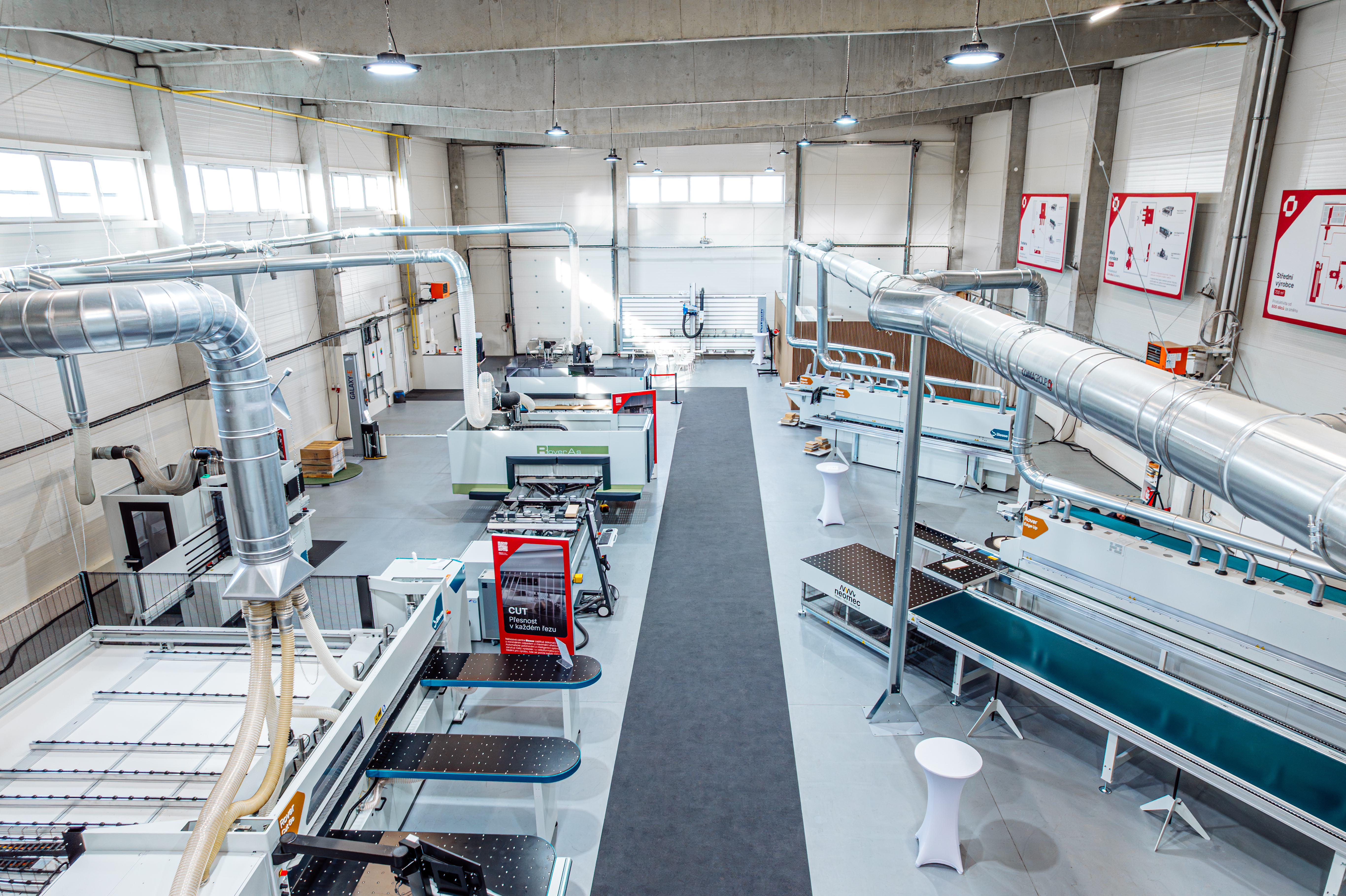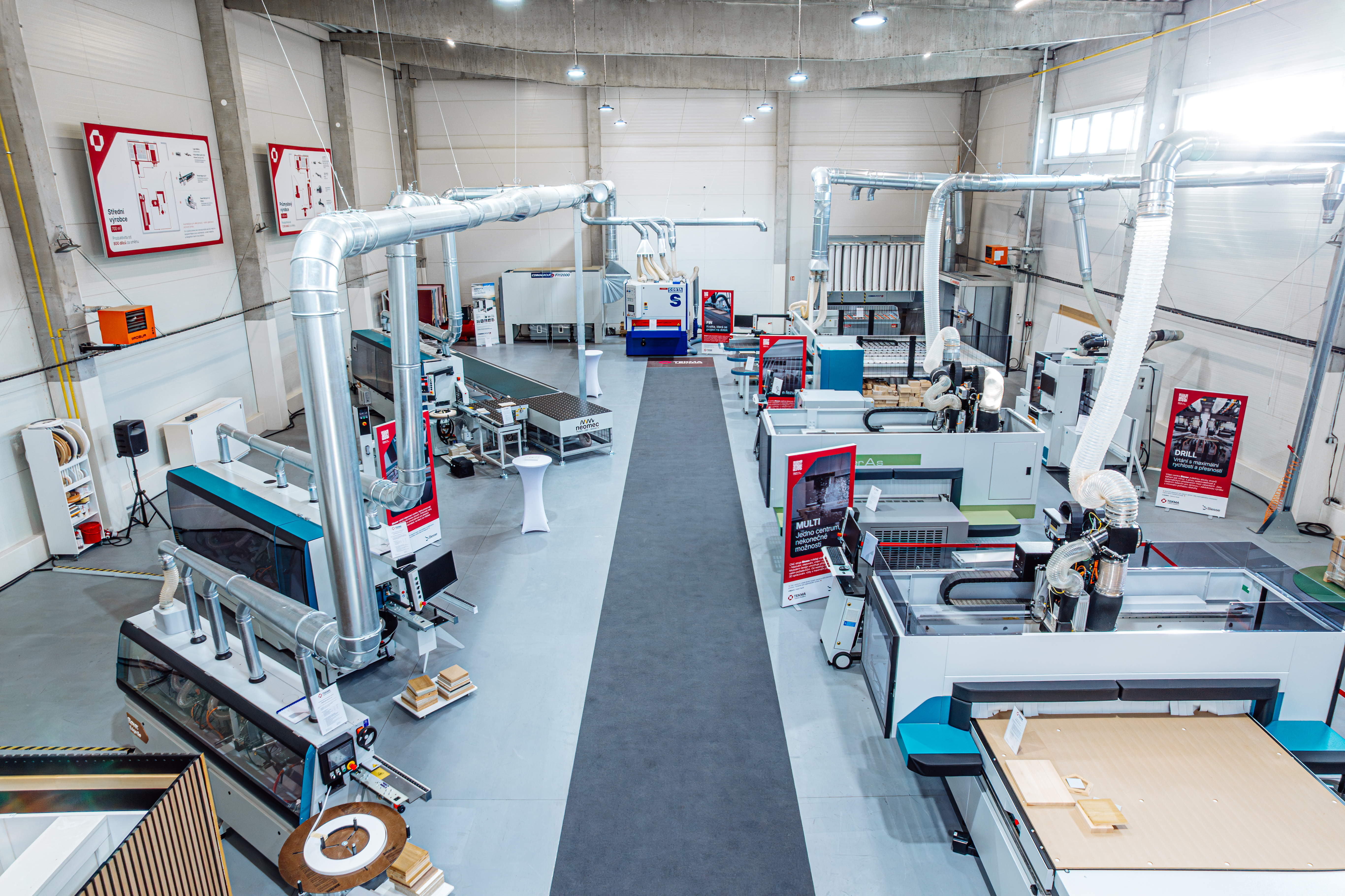 Showroom TEKMA je miesto, kde si technológie môžete vyskúšať naživo a vidieť ich pracovať v reálnych podmienkach. Na ploche 2 000 m² vás čaká viac ako 25 plne funkčných strojov, odborné ukážky obrábania aj možnosť vyskúšať si konkrétne postupy na vlastnom materiáli. Celým procesom vás prevedie náš tím skúsených technikov vyškolených priamo u výrobcov. Showroom slúži nielen na prezentáciu technológií, ale aj ako priestor na školenia, konzultácie a hľadanie riešení, ktoré dokážu zefektívniť výrobu a posunúť váš podnik ďalej.